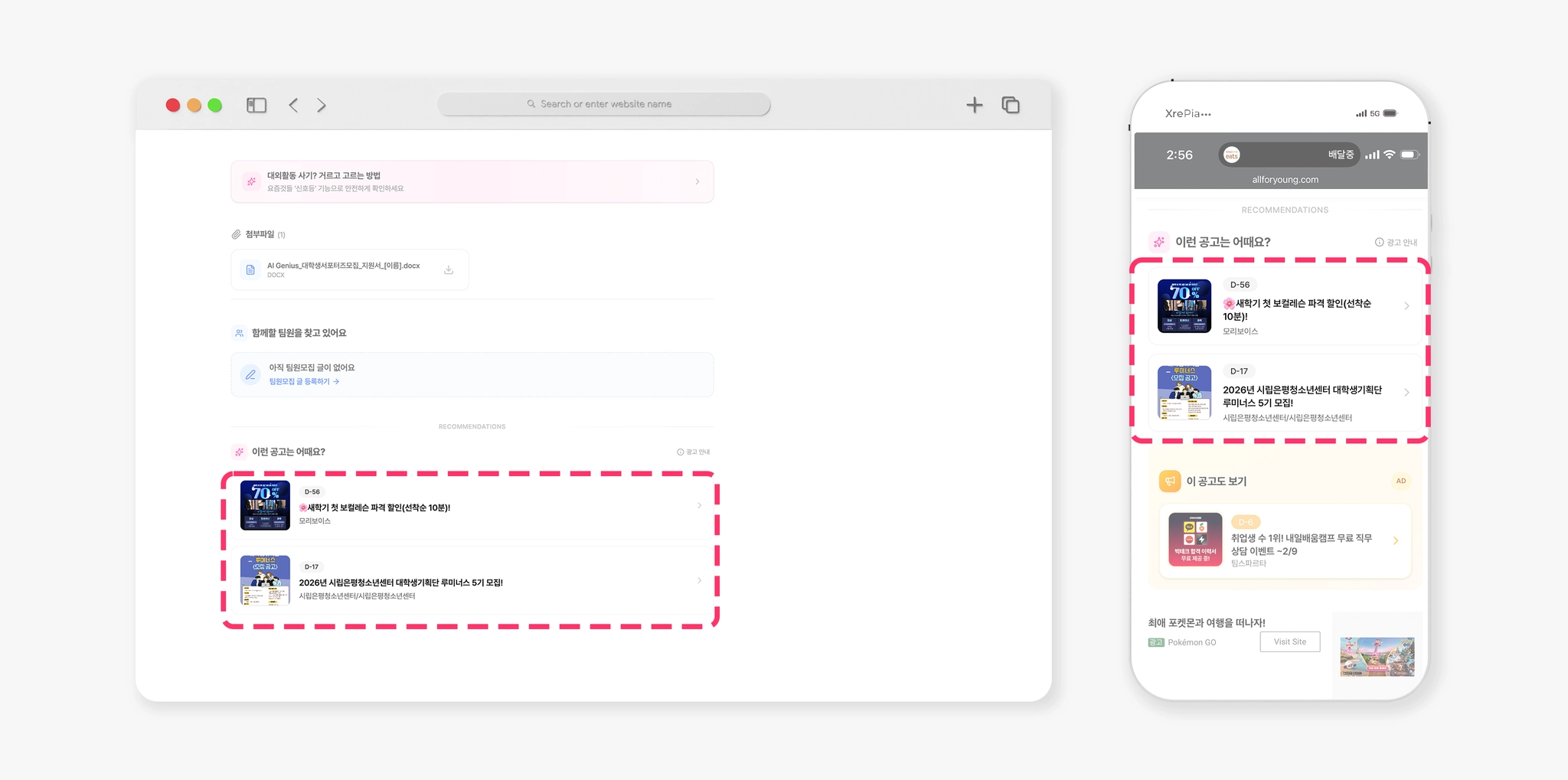 모든 공고 상세페이지 하단 [이런 공고는 어떄요] 고정(노출순서는 실시간 랜덤)