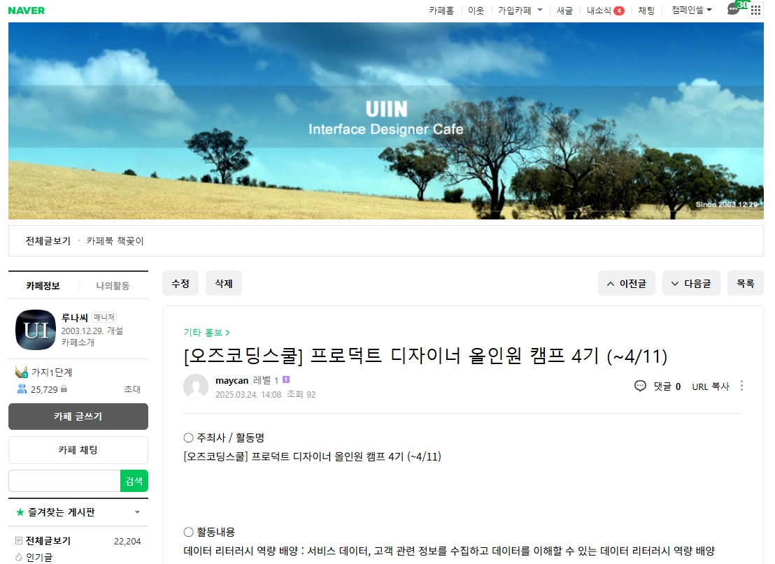 분야 : 취업, IT, 영상, 디자인, 문학, 창업 중 1개 선택