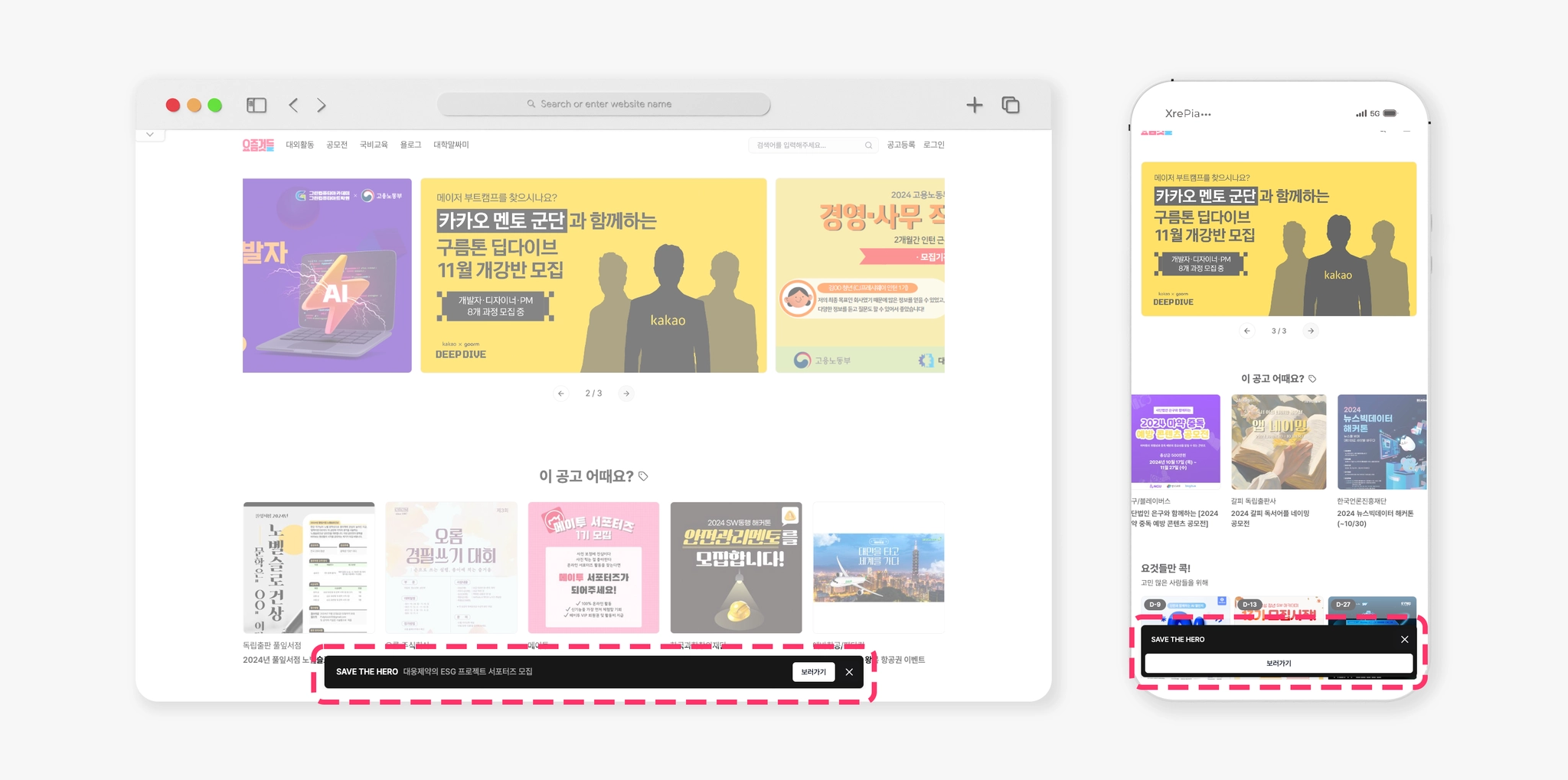 요즘것들 내 모든 페이지를 방문할때마다 노출되어 트래픽 극대화 캠페인에 강력 추천해요