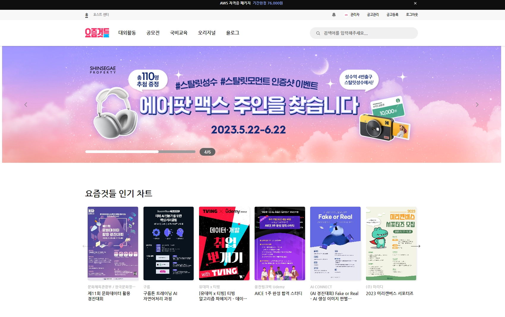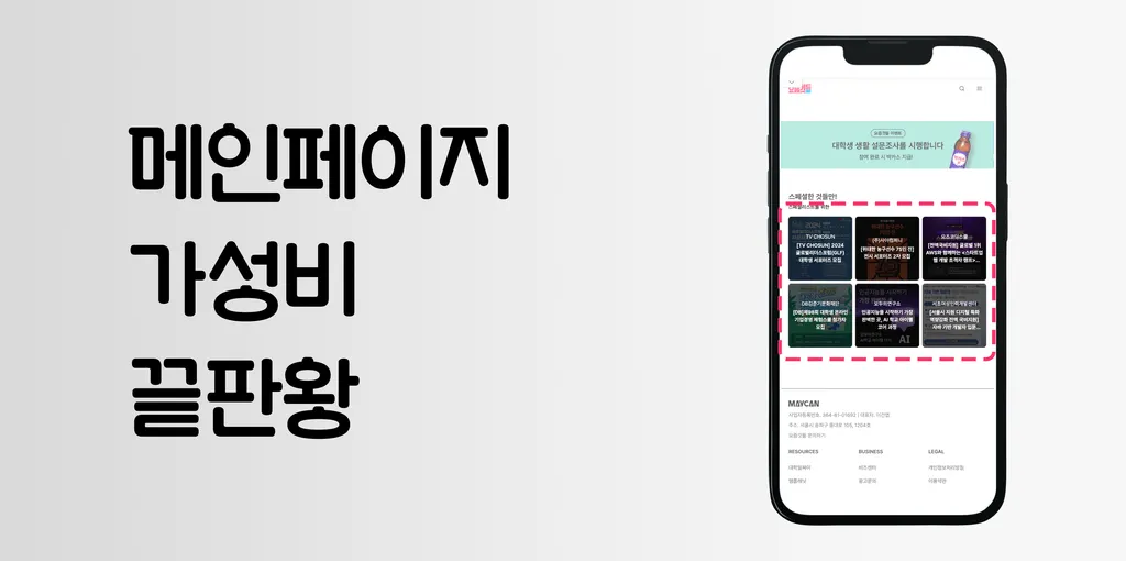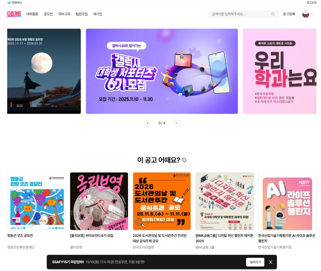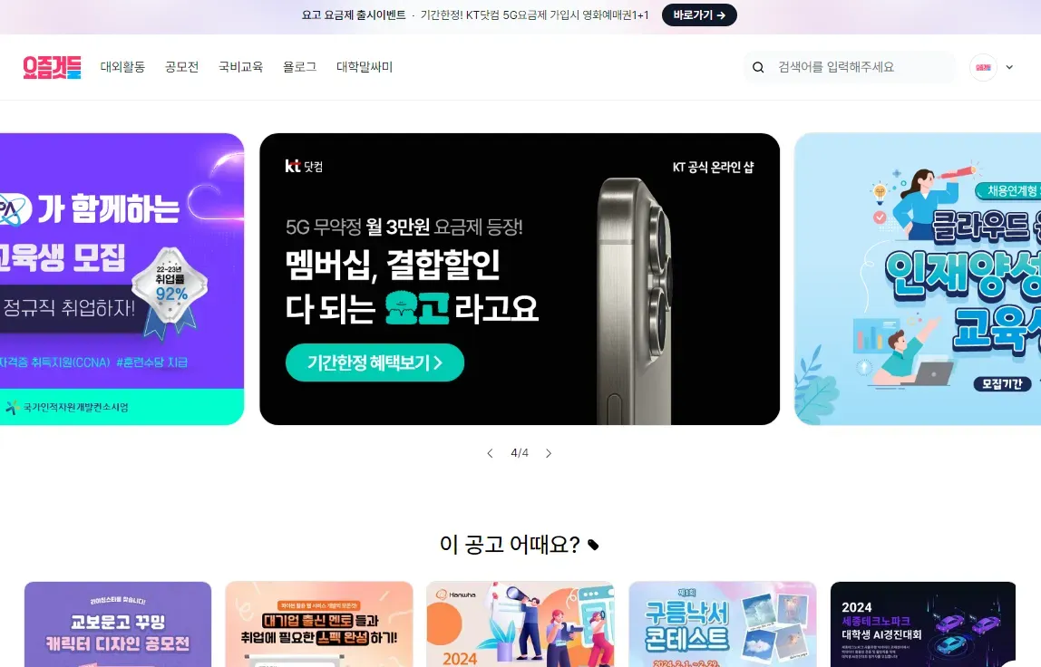[M3]픽배너 | 메인페이지 [요것들만 콕] 1~3순위 구좌 고정 | 60만원 | 6만뷰 | 0.2 ~ 0.3% | 주목도 높은 포스터가 있는 대외활동/공모전/교육 |