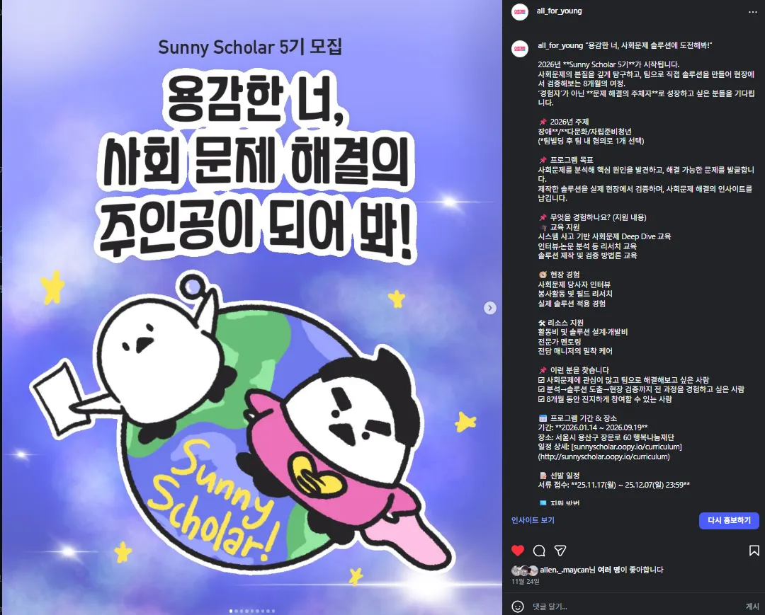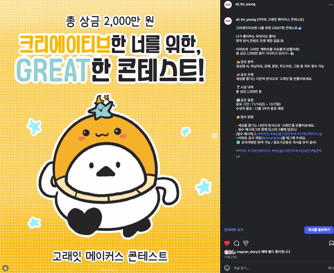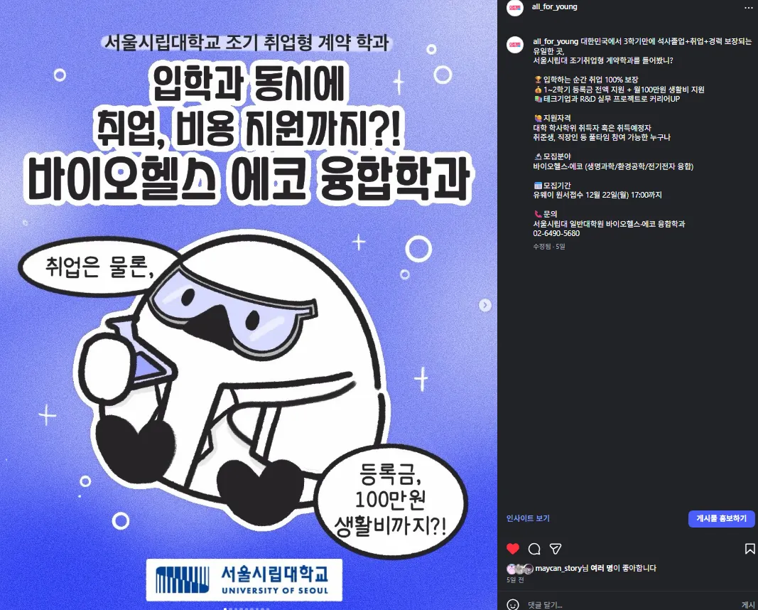 딱딱한 광고가 아닌, 재미와 공감을 주는 웹툰 형식으로 제작되어 대외활동/공모전/이벤트를 친근하고 강렬하게 알릴 수 있어요. 특히 요즘것들 캐릭터 “용맹덕”을 활용하여 참여율을 높일 수 있어요