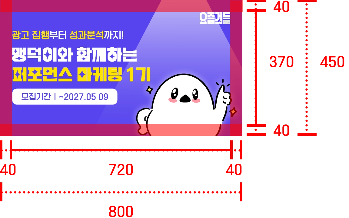 주요 이미지 소재는 가로 800px, 세로 450px 영역 내 자유 구성