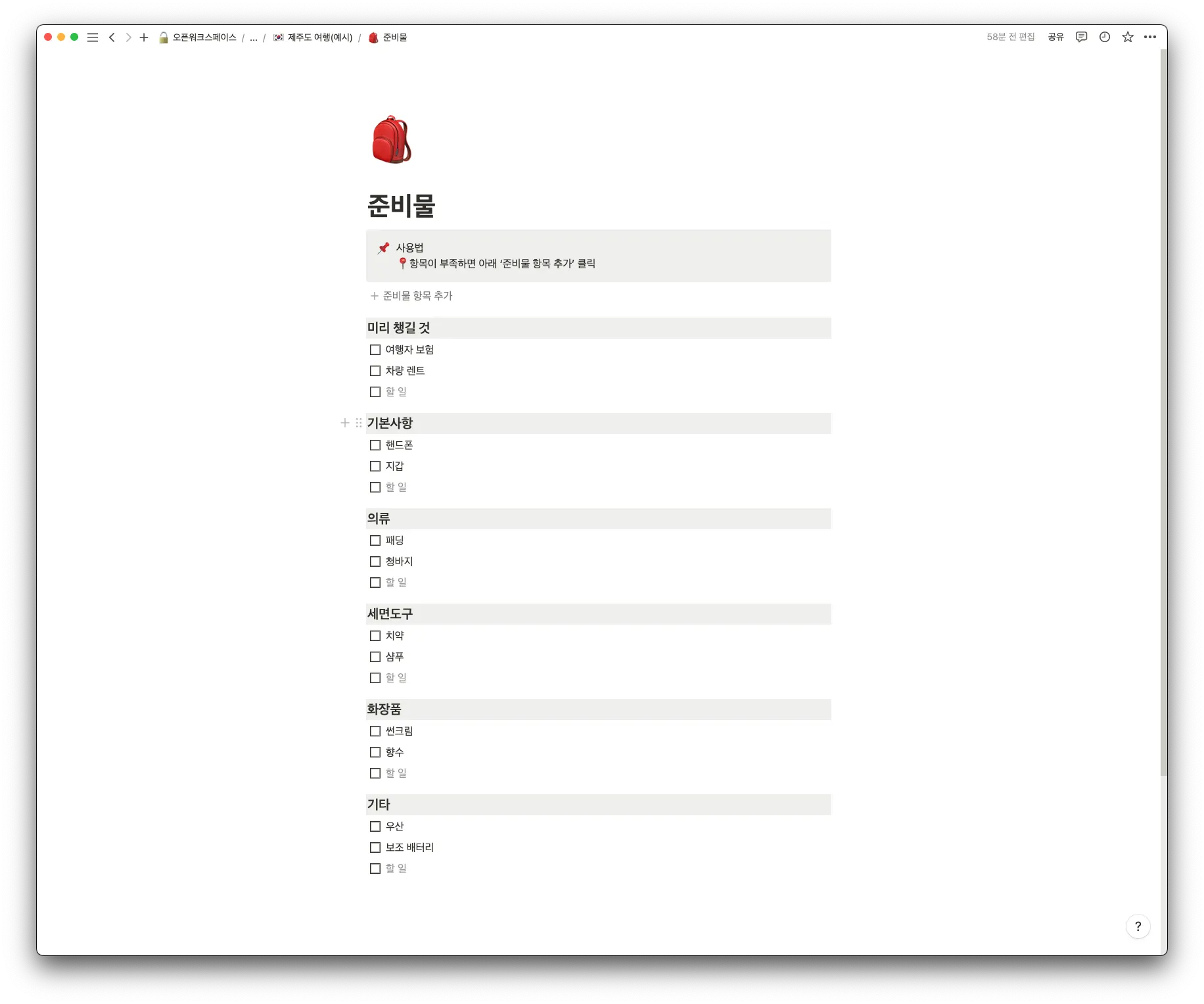 잊지 않고 짐을 챙기기 위한 체크 리스트